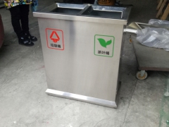 不锈钢垃圾桶产品简述:不锈钢分类垃圾桶选用材质为不锈钢板和镀锌板,内胆可选配镀锌板铁皮内桶和玻璃钢内桶,本产品为金属材质,坚固耐用,不易破损,耐火,抗高低温,适合恶劣气候条件。【制作工艺】为:选用优质不锈钢经下料——折合——压筋——冲孔——成型,氩氟焊、打磨、抛光、打腊。顶盖采用滚压成型技术;【表面处理】打磨、抛光、喷塑环卫标识;【产品性能】色泽亮丽美观,并具有防潮、防腐、防锈、易清洁、耐高温、易清理等特点;【适用范围】如城管系统、环卫系统、物业管理系统,小区、工厂、餐饮、城市道路、各类广场、企业单位、花园、公园、学校、医院、车站、码头、风景旅游区等公共场所;【产品安装】本品采用膨胀螺丝直接固定地面,也可直接放于地面。 |