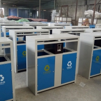 钢制垃圾桶整体都用优质镀锌钢板,经折弯冲压一次性成型,产品一律用室外粉静电喷塑,经过190°的高温,限度延长了垃圾桶的使用寿命,使垃圾桶颜色持久不变,亮丽如新。表层有效做到 易保洁表面光滑之优点,不脱落,不起层。钢制垃圾桶一种存放垃圾的容器,使用镀锌钢板制作而成。
